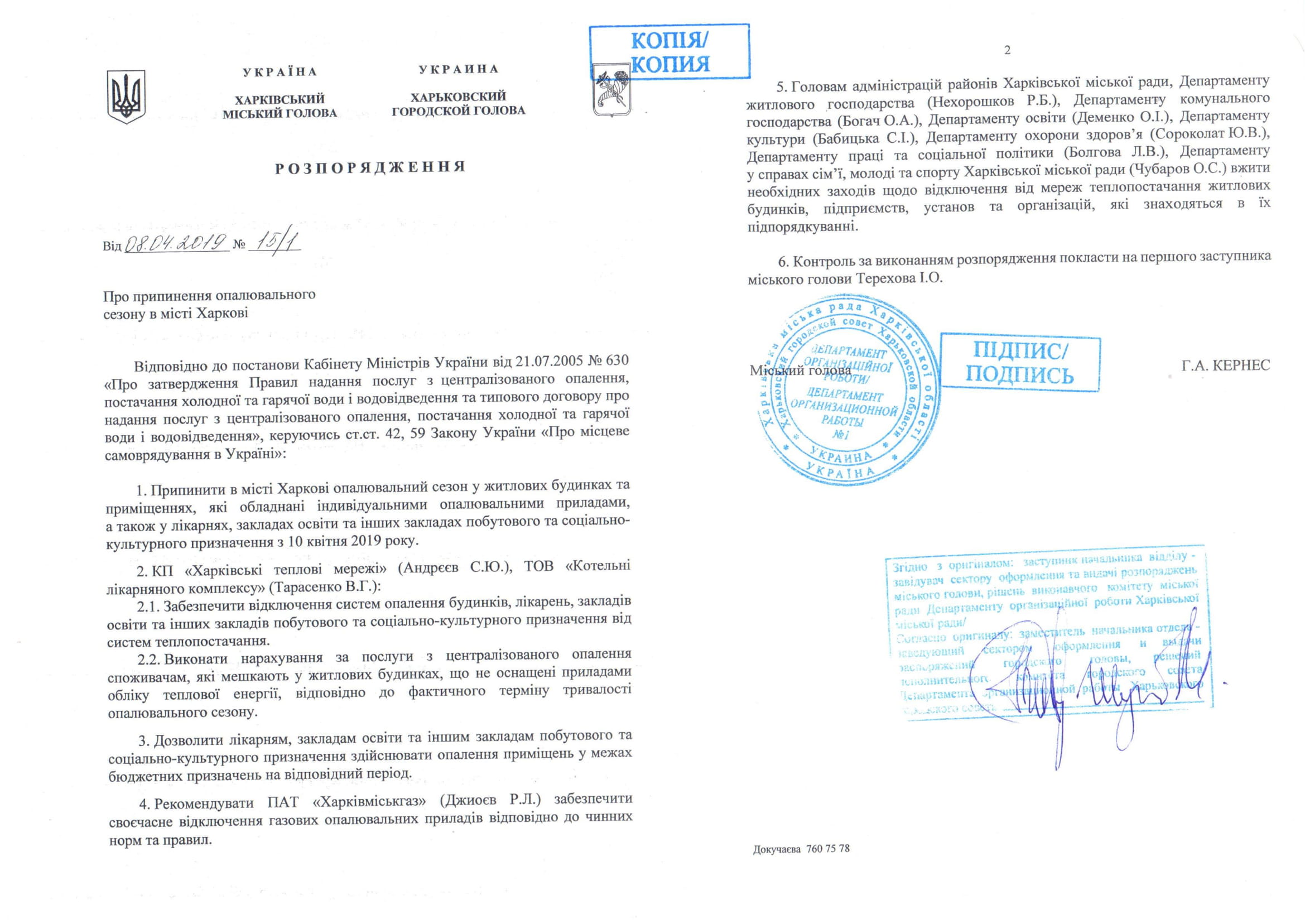 Соответствующее распоряжение подписал Харьковский городской голова Геннадий Кернес.