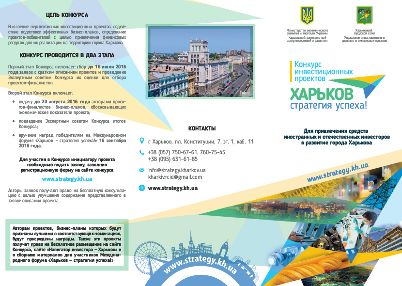 Прийом заявок на участь у конкурсі інноваційно-інвестиційних проектів в рамках розробки Стратегії розвитку Харкова до 2020 року триватиме до 16 липня.