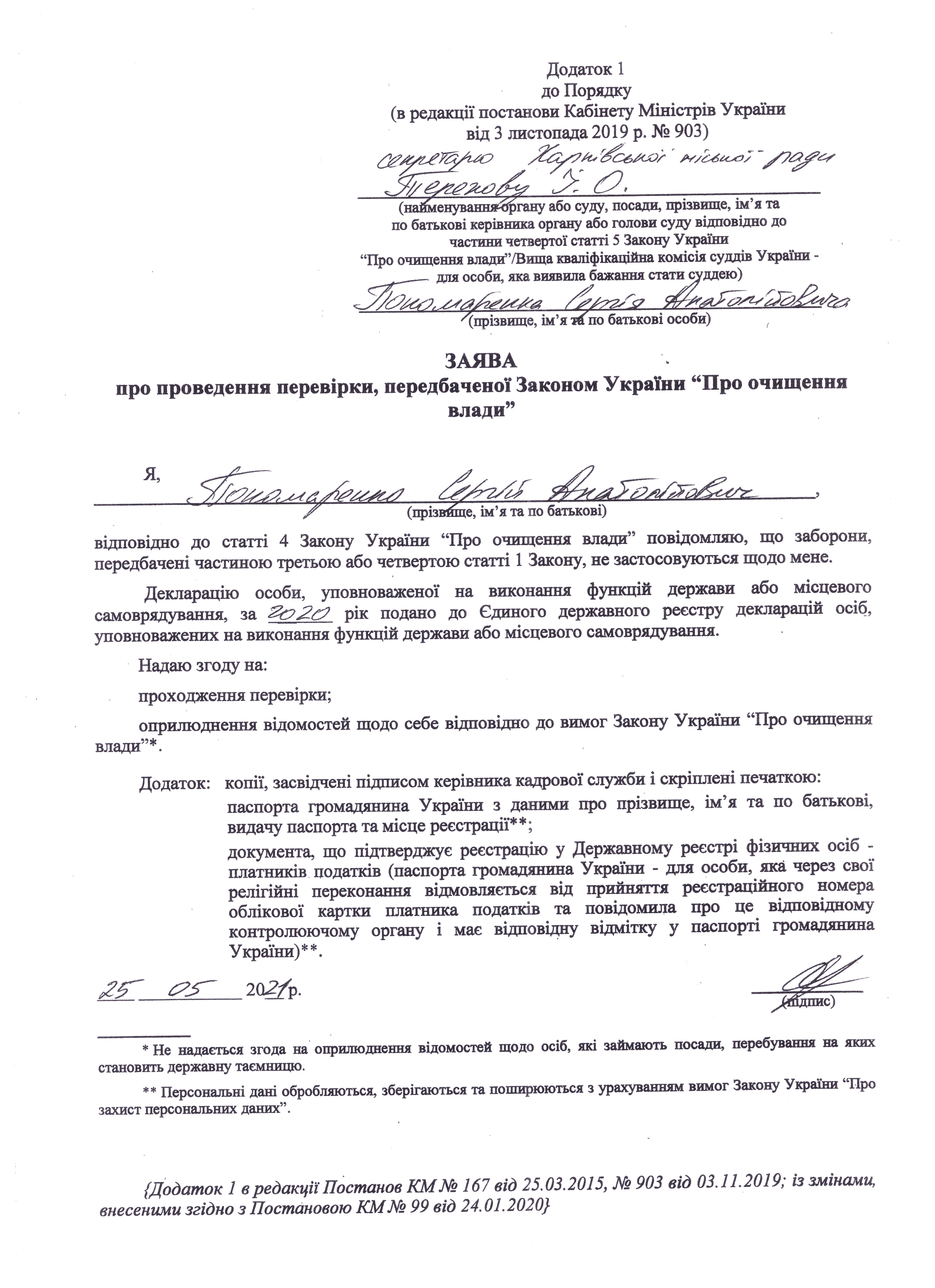 Пономаренко Сергій Анатолійович. Дата початку перевірки 11.06.2021 року