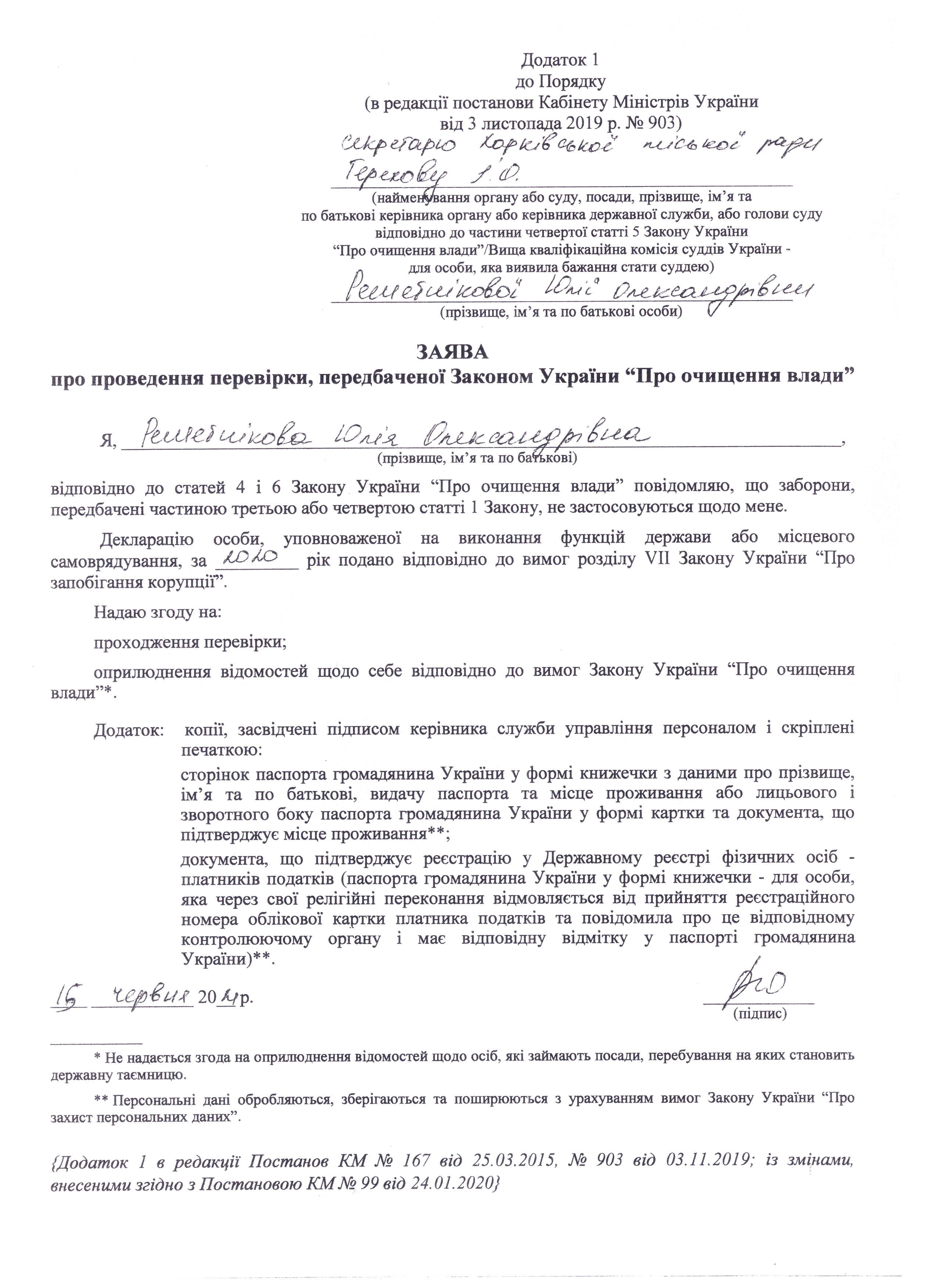 Решетнікова Юлія Олександрівна. Дата початку перевірки 18.06.2021 року