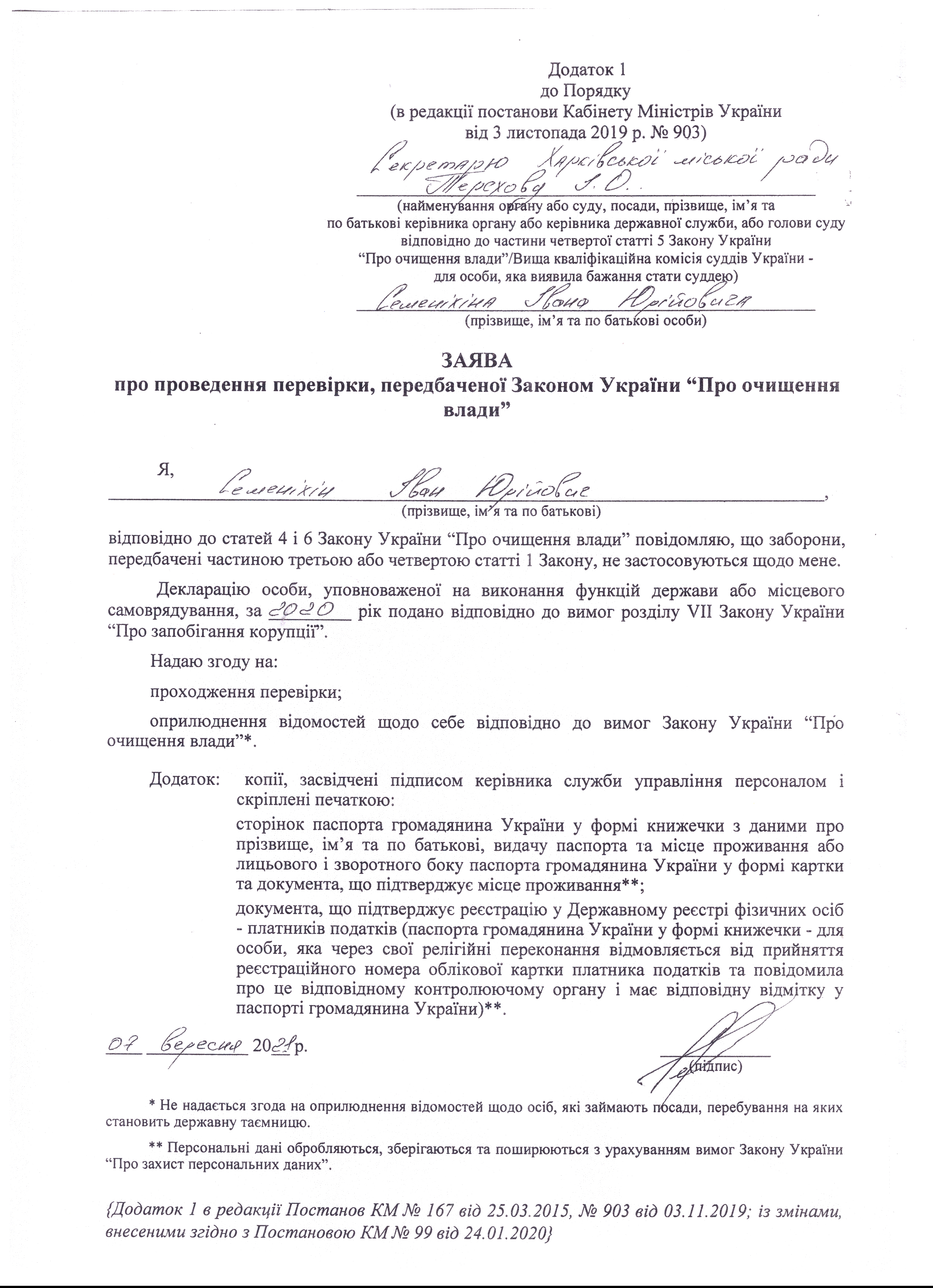 Семеніхін Іван Юрійович. Дата початку перевірки 10.09.2021 року